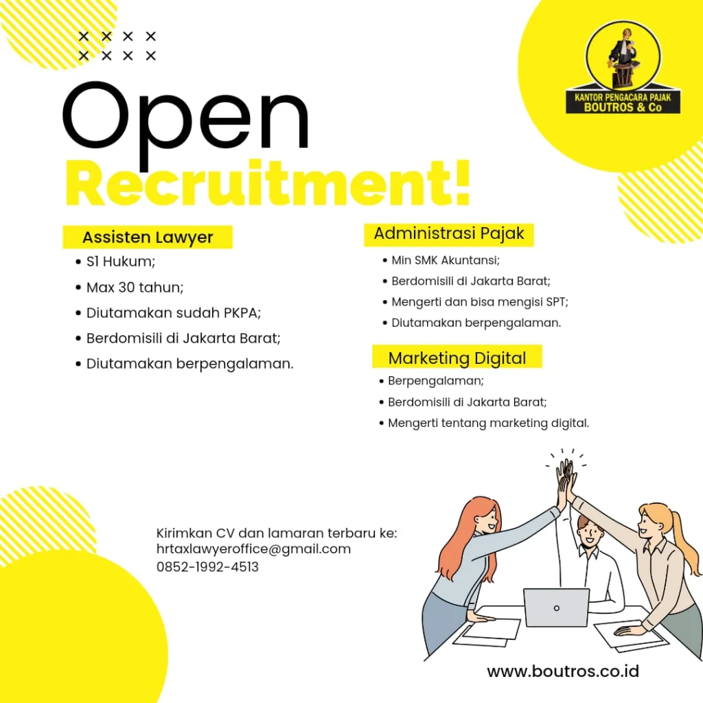 Tax Lawyer Office BOUTROS & Co membuka lowongan pekerjaan untuk posisi Administrasi Pajak.
